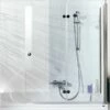 Das Deckenverstrebungsrohr ist bis auf 1000 mm ausziehbar, wodurch eine Gesamthöhe von 2400 mm ab Badewannenoberkante möglich ist.