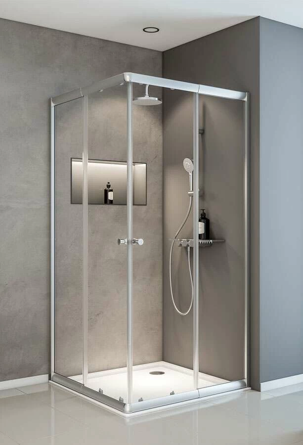 Eine Duschkabine im StandardmaĂź wird immer kĂĽrzer als angegeben gefertigt, z.B. ca. 860 mm statt 900 mm. Fordern Sie vor der Bestellung Ihren passenden Fliesenspiegel an.