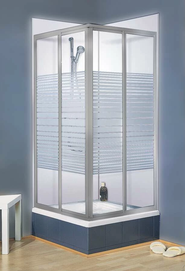 - Set bestehend aus einer Eckeinstieg-Duschkabine sowie zwei Duschrückwänden inkl. des passenden Profil-Sets