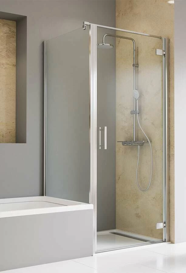 Eine Duschkabine im Standardmaß wird immer kürzer als angegeben gefertigt, z.B. ca. 860 mm statt 900 mm. Fordern Sie vor der Bestellung Ihren passenden Fliesenspiegel an.
