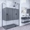 Eine Duschkabine im Standardmaß wird immer kürzer als angegeben gefertigt, z.B. ca. 860 mm statt 900 mm. Fordern Sie vor der Bestellung Ihren passenden Fliesenspiegel an.