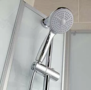 - höhenverstellbare Kopfbrause in Chromoptik, schwenkbar