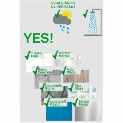 - Fliesen, Glas, Marmor, Metall, Naturstein, Beton, Holz, verschiedene Kunststoffe